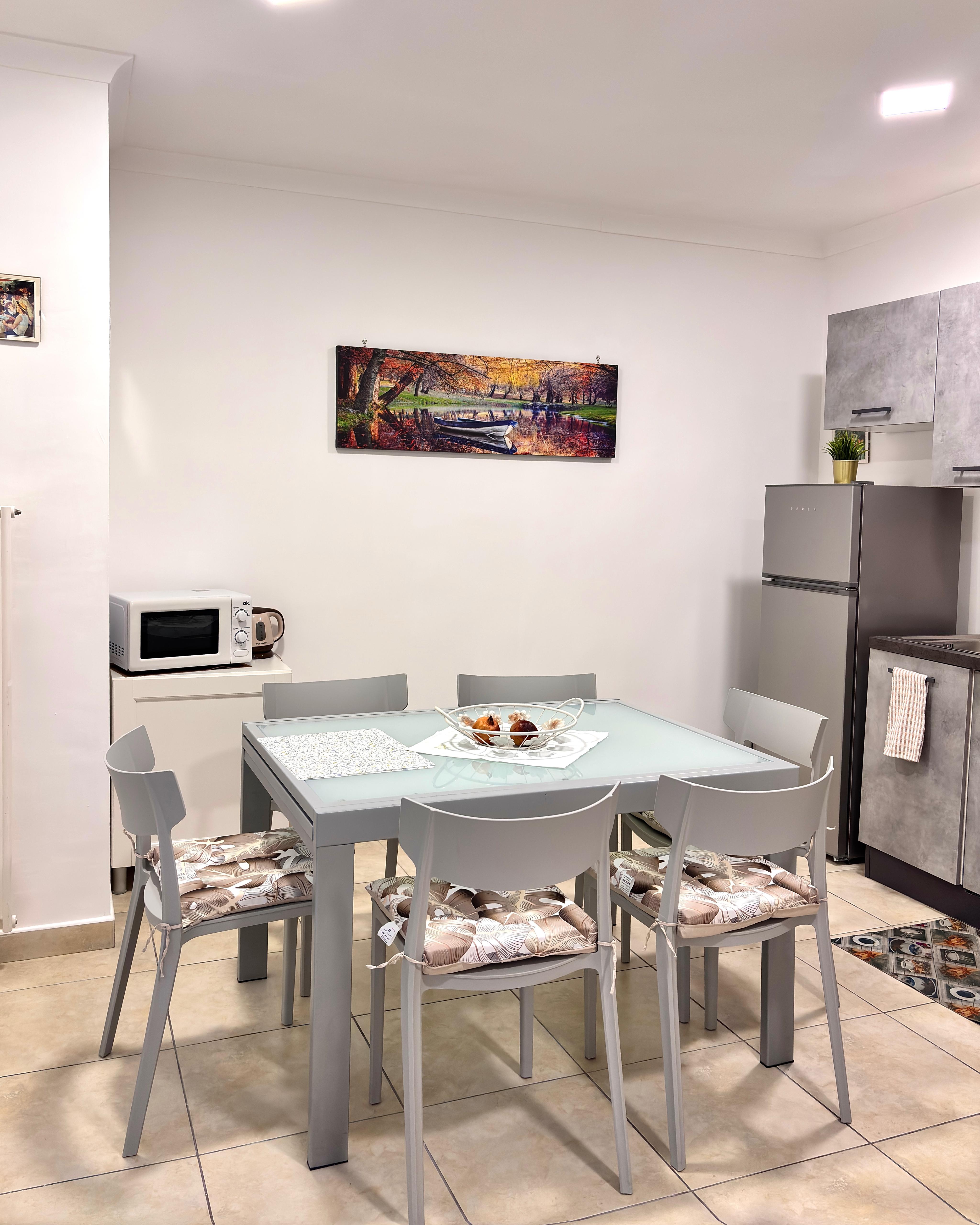 - 🍽 Cucina attrezzata con utensili, frigorifero, macchina da caffè